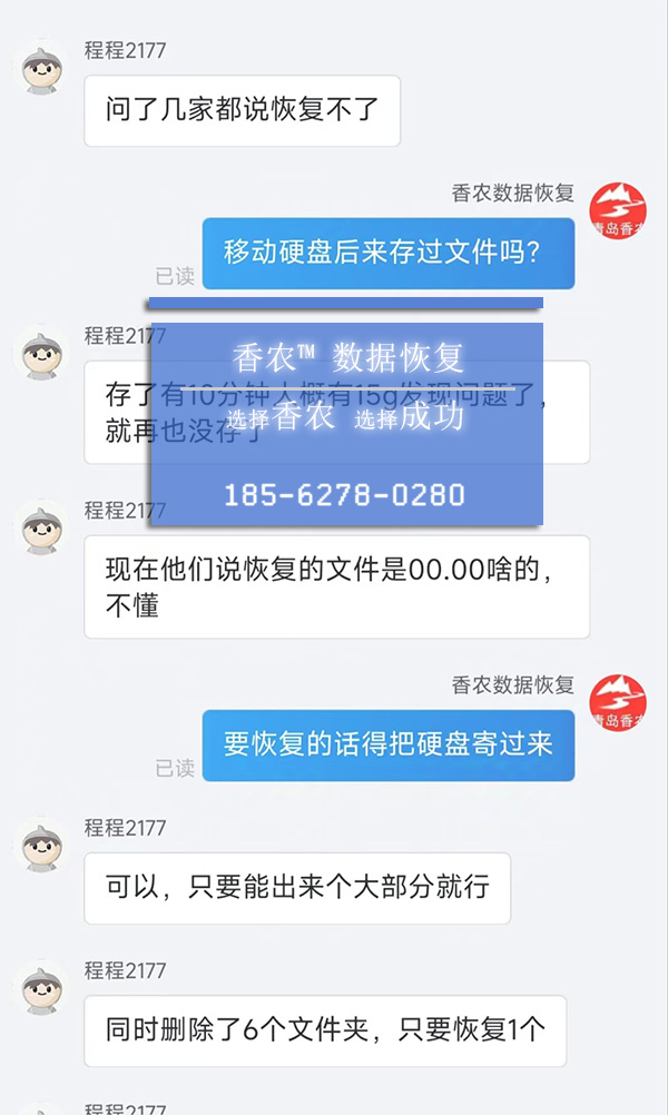 開封客戶,希捷移動硬盤,不慎將婚禮視頻文件夾刪除,問了幾家都說恢復不了,說恢復的文件都是00。